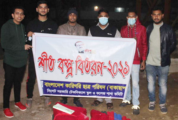 সিলেট : বাংলাদেশ কারিগরি ছাত্র পরিষদ (বাকাছাপ),সিলেট সরকারি টেকনিক্যাল স্কুল ও কলেজ শাখার উদ্যেগে মঙ্গলবার (১২ জানুয়ারি) রাতে সিলেট রেলওয়ে স্টেশন এলাকা সহ সিলেট নগরীর বিভিন্ন এলাকা ঘুরে শীতার্তদের মাঝে কম্বল বিতরণ ও সিলেট রেলওয়ে পুলিশ দের মাঝে মাস্ক বিতরন করা হয়। নগরীর জিন্দাবাজার, চৌহাট্টা, রিকাবীবাজার, সোবহানিঘাট এলাকার প্রায় শতাধিক প্রতিবন্ধী, পথশিশু, বয়স্ক ও অসহায় শীতার্ত মানুষের মাঝে কম্বল বিতরণ করা হয়।